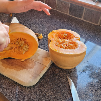 At the farm we wandered through the various pumpkin bins in search of a “bakeable” pumpkin. We must have looked bewildered because the owner made her way over to us and asked “Can I help you with something?” .We told her we were looking to bake a pie, and with that she confidently claimed that the cheese pumpkin was what we were looking for, insisting they make the best pies. We had never heard of a cheese pumpkin so we jumped at her direction.